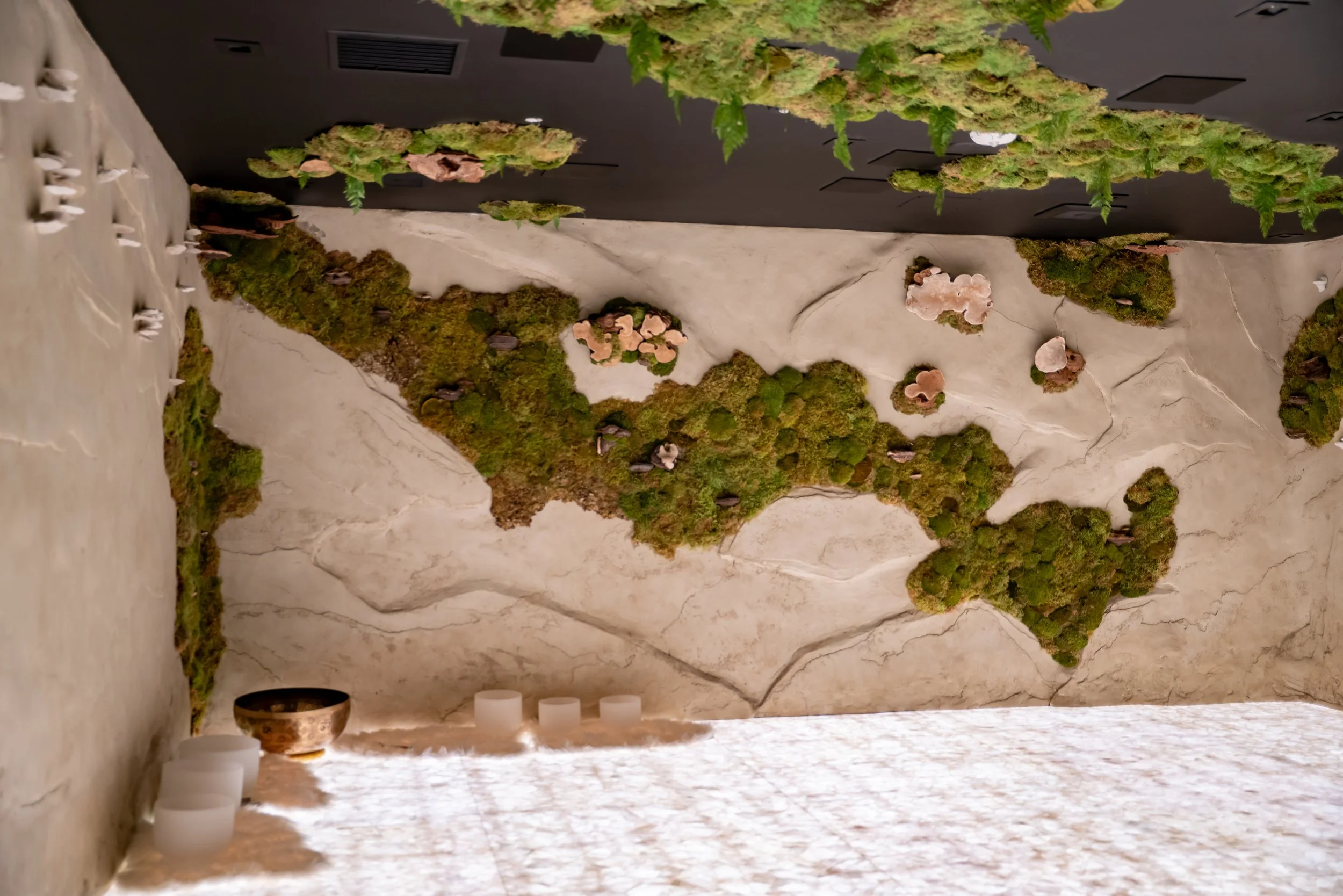 Designed and executed a custom biophilic art installation for the Earth Room walls & ceilings.